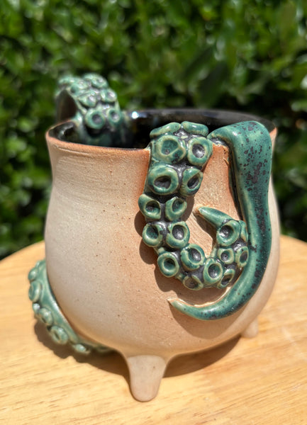 This handmade mug is perfect for bringing a bit of spooky season with you throughout the year. It is microwave and dishwasher safe and holds roughly 14 oz. *no octopus were harmed in the making of this mug*